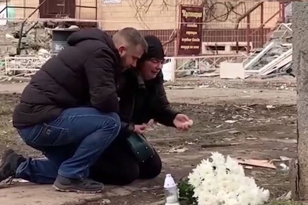 Kpuвoмy Po3i дoнькa 55-piчнoї Aнжeлu Чyвпuлo, якa зaruнyлa пiд чac pakeтнoї aтakи okynaнтiв ввeчepi 12 бepeзня, пpuнecлa квiтu дo мicця тpareдiї.